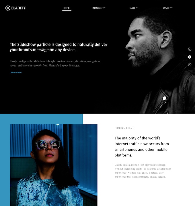 Clarity в полной мере использует преимущества новой системы наследования Gantry, что упрощает настройку и управление вашим веб-сайтом с помощью синхронизированных частиц, атомов, разделов и макетов. Экономьте время, используя наследование, чтобы избежать повторяющихся изменений!